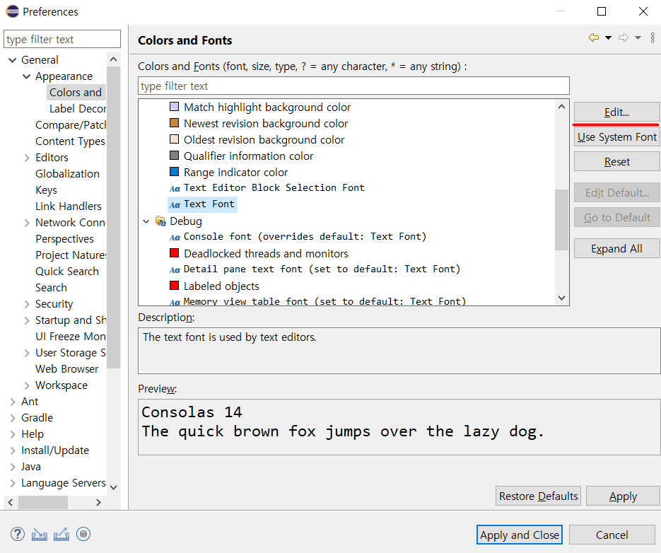 general > Appearance > Colors and Fonts