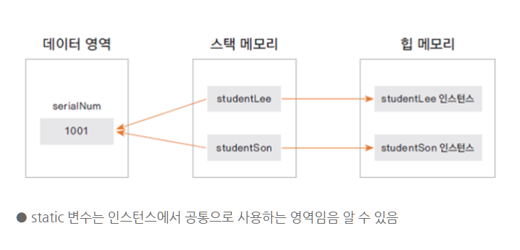 ● 인스턴스가 생성될 때 만들어지는 변수가 아닌, 처음 프로그램이 메모리에 로딩될 때 메모리를 할당
