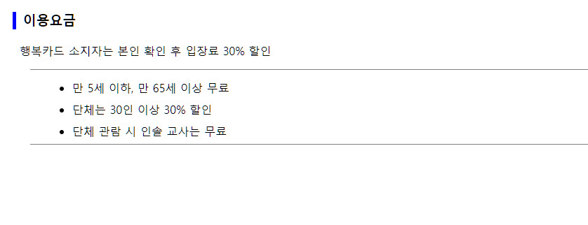 <p>행복카드 소지자는 본인 확인 후 입장료 30% 할인</p>
