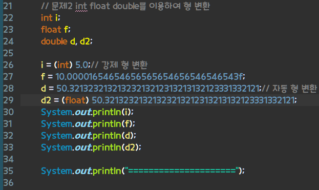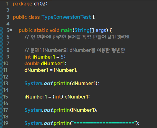 dNumber1 = iNumber1; 은 자동으로 형 변환되어 dNumber1는 5.0로 초기화