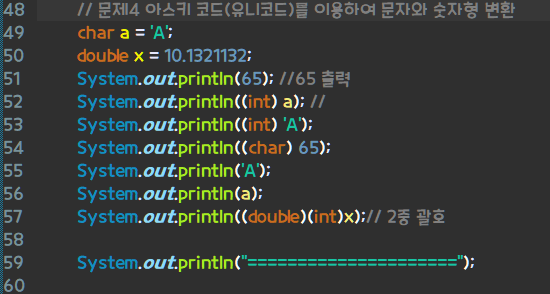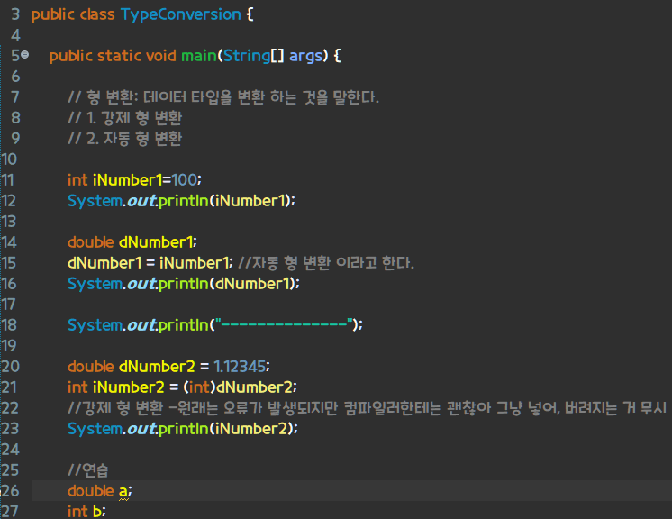 iNumber1 = (int)dNumber1; 는 가능 (강제 형 변환)