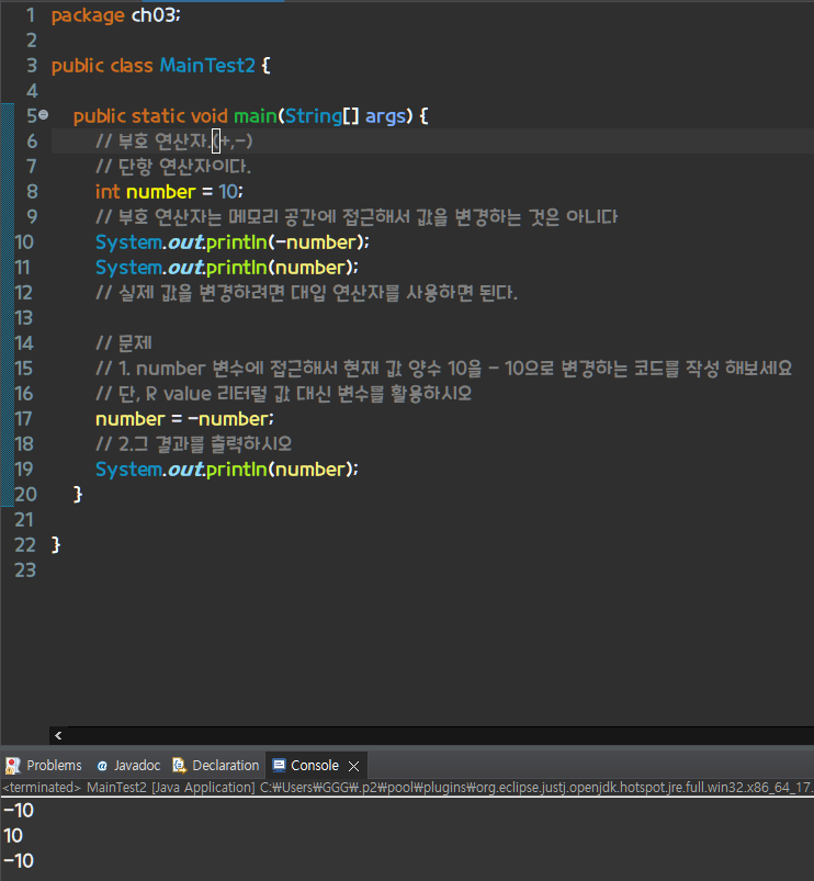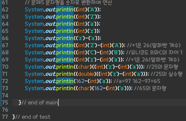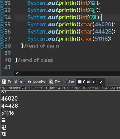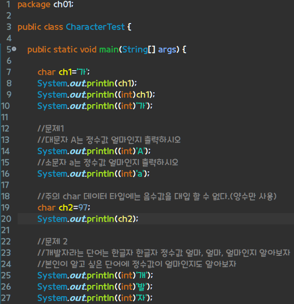 유니코드를 이용하여 정수형 변수 선언 및 출력