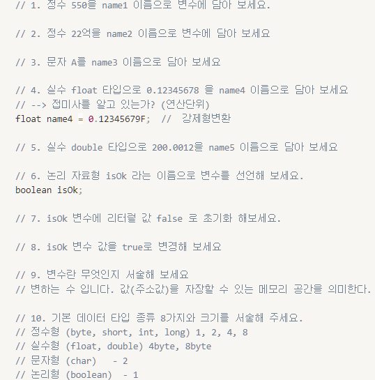 변수 - 데이터를 담을 수 있는 메모리 공간을 의미 한다.