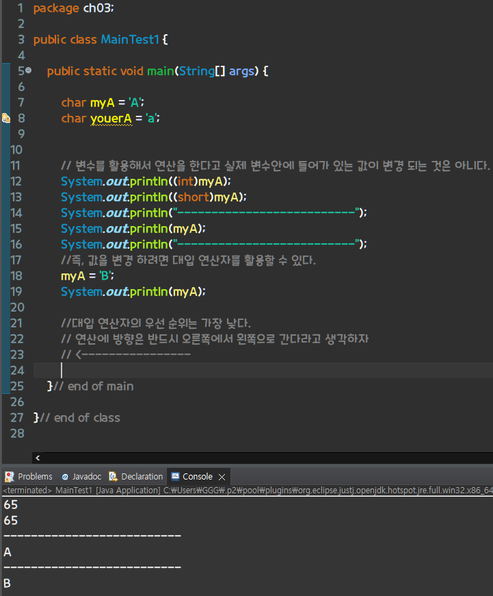 | [JAVA] 연산자(산술, 복합 대입, 증감, 감소, 조건, 논리 관계)와 조건문(if,if else, if else if), Scanner 사용법 (0) | 2023.07.26 |