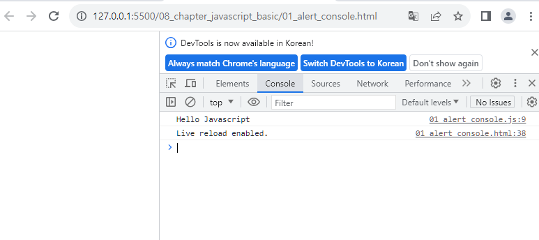 console.log 는 자동 줄바꿈 alert는 \n 적어야함