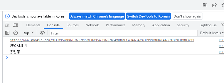 // 출력 : 안녕하세요 우리 교육센터에 방문하신 것을 환영합니다.
