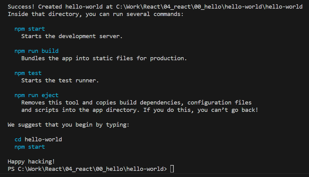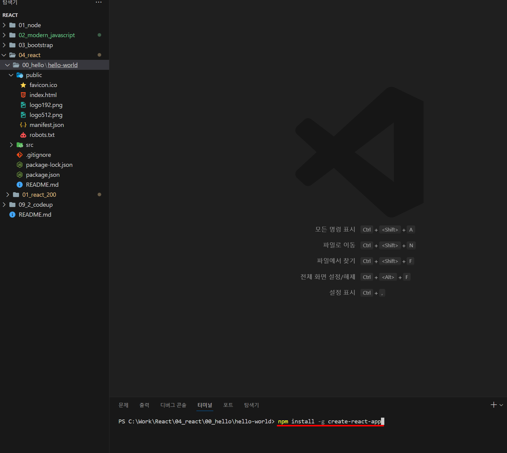 cd 프로젝트명 (프로젝트명 폴더로 들어가기)