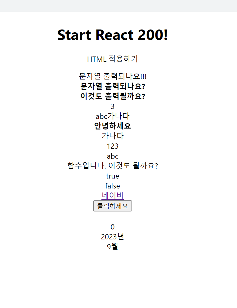 // 리액트 특징 : 변수값 + html 태그를 같이 사용이 가능함(JSX 표현식)