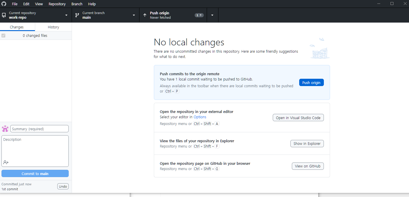 github desktop 사용시 pull 먼저 실행