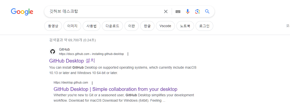 구글에 깃허브 데스크탑 검색 또는 밑에 링크 클릭