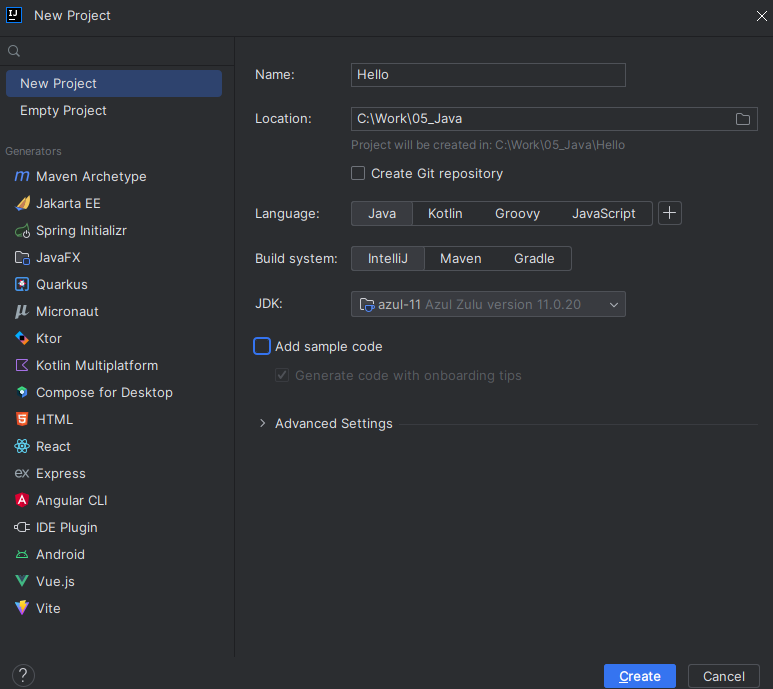 프로젝트 생성